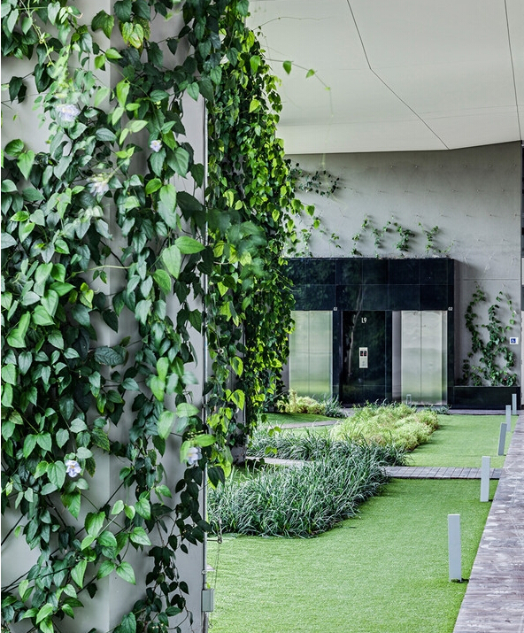作為世界公認(rèn)的“花園城市國家”,新加坡國土面積僅718平方公里,公園和自然保護(hù)區(qū)的面積卻占到了其中的10%??罩芯G化、垂直綠化等也成為了新加坡隨處可見的綠色風(fēng)景。以下圖片是:DP建筑事務(wù)所(新加坡Ridgewood公寓樓),它把垂直綠化和空中綠化、屋頂綠化發(fā)揮到極致。本項(xiàng)目面積為17940平方米。