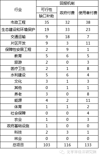從整體看,已簽約的PPP項目回報機制分布較為平均,使用可行性缺口、政府付費和使用者付費的項目數(shù)量分別為103、116和133,各種模式勢均力敵。但從行業(yè)細分上來看,差異依舊存在,生態(tài)建設(shè)和環(huán)境保護和交通運輸這兩類項目公益性較強,多由政府主導,政府付費的方式覆蓋面較廣;保障性安居工程、教育、市政工程和水利建設(shè)這四類項目兼具一定的公益性和盈利性,三種回報機制的運用比例相當;值得關(guān)注的是社會保障、養(yǎng)老和醫(yī)療衛(wèi)生這三類公益性項目竟多以使用者付費方式完成,而且這種模式也得到了社會資本的認可,這不禁為供給側(cè)改革提供了一個新的思路和方向,在社會資本的助力下,補全公共服務(wù)短板。