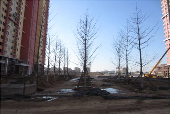 1-2#樓間居民活動(dòng)廣場(chǎng)銀杏種植