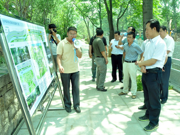 5月30日,濟(jì)南市園林局局長(zhǎng)韓永軍在園林公司經(jīng)理劉傳濤及園林公司相關(guān)人員的陪同下,蒞臨北護(hù)城河綠化景觀(guān)改造提升工程施工現(xiàn)場(chǎng)并予以指導(dǎo)。