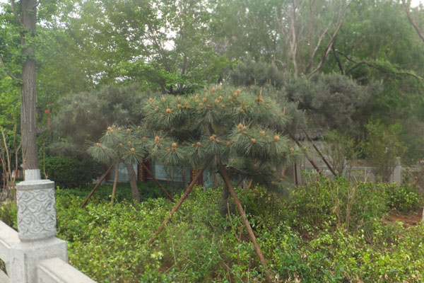在種植綠化苗木時(shí)采用樹姿端莊,蒼翠挺拔,別具特色的白皮松,提升工程品質(zhì),體現(xiàn)園林文化。