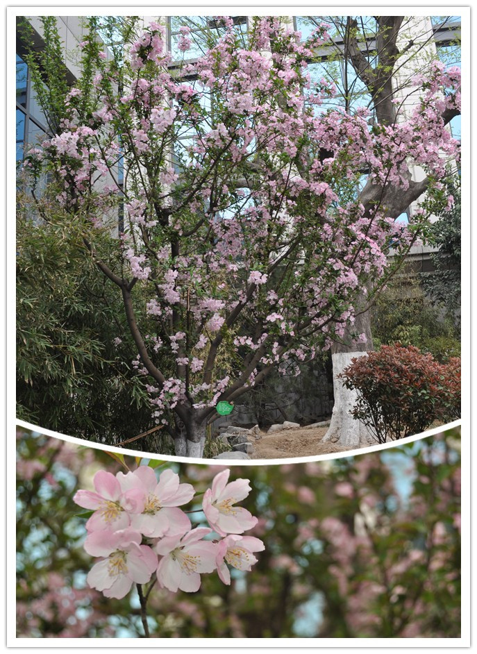 垂絲海棠是薔薇科蘋果屬的植物,屬落葉小喬木4~5月開放。垂絲海棠柔蔓迎風(fēng),垂英鳧鳧,如秀發(fā)遮面的淑女,脈脈深情,風(fēng)姿憐人。宋代楊萬里詩(shī)中:“垂絲別得一風(fēng)光,誰(shuí)道全輸蜀海棠。風(fēng)攪玉皇紅世界,日烘青帝紫衣裳。懶無氣力仍春醉,睡起精神欲曉?shī)y。舉似老夫新句子,看渠桃杏敢承當(dāng)。”形容妖艷的垂絲海棠鮮紅的花瓣把藍(lán)天、天界都攪紅了,閃爍著紫色的花萼如紫袍,柔軟下垂的紅色花朵如喝了酒的少婦,玉肌泛紅,嬌弱乏力。其姿色、妖態(tài)更勝桃、李。垂絲海棠性喜陽(yáng)光,不耐陰,也不甚耐寒,愛溫暖濕潤(rùn)環(huán)境,適生于陽(yáng)光充足、背風(fēng)之處,土壤要求不嚴(yán),不耐水澇。海棠不僅花色艷麗,其果實(shí)亦玲瓏可觀。至秋季果實(shí)成熟,紅黃機(jī)映高懸枝間,恰似紅燈點(diǎn)點(diǎn),乘風(fēng)蕩漾,別具風(fēng)姿。