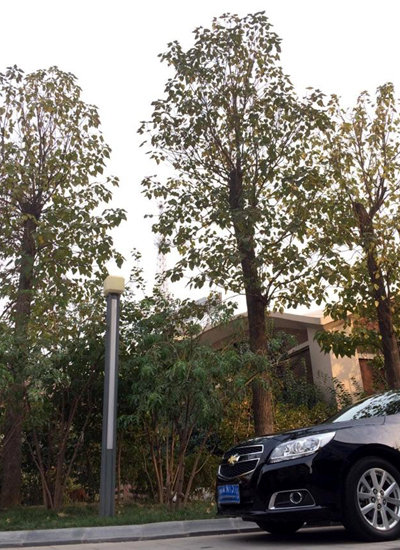 楸樹樹姿俊秀,高大通直,枝繁葉茂,不僅壽命長(zhǎng),而且是綜合利用價(jià)值很高的優(yōu)質(zhì)用材樹種,在中國博大的樹木園中,唯其“材”貌雙全,自古素有“木王”之美稱,加之楸樹的花為紫色,還有“紫氣東來”之意。位于集團(tuán)大院東側(cè),游園西側(cè)小步行路路北便栽植有三顆高大挺拔的楸樹,它郁郁蔥蔥的綠冠與美術(shù)館特有的穹頂建筑相映成輝融為一體。