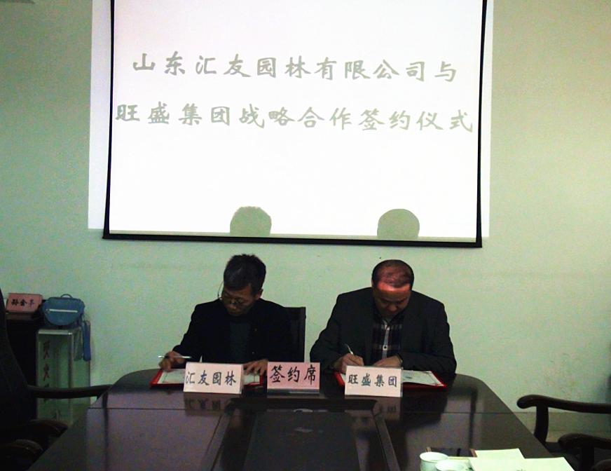 2015年12月12日上午,山東匯友園林有限公司與山東旺盛園林股份有限公司在匯友園林基地舉行戰(zhàn)略合作簽約儀式。