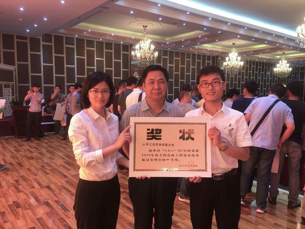 匯友市政園林集團QC小組在2016年度全國市政工程建設(shè)優(yōu)秀質(zhì)量管理小組獲一等獎