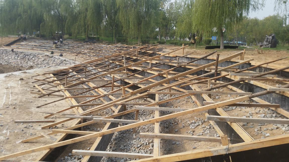 截止目前為止,東營錦華雕塑公園工程臺階制作約完成80%、園路基礎(chǔ)制作約完成45%,澆筑混凝土擋墻、打木樁的工作已經(jīng)完美收官。后期以湖面木棧道平臺為主進行緊張施工。項目部根據(jù)現(xiàn)場實際需要和業(yè)主要求,制定施工計劃,為后期施工明確清晰的思路和方法,盡心盡力為業(yè)主交一份滿意答卷。
