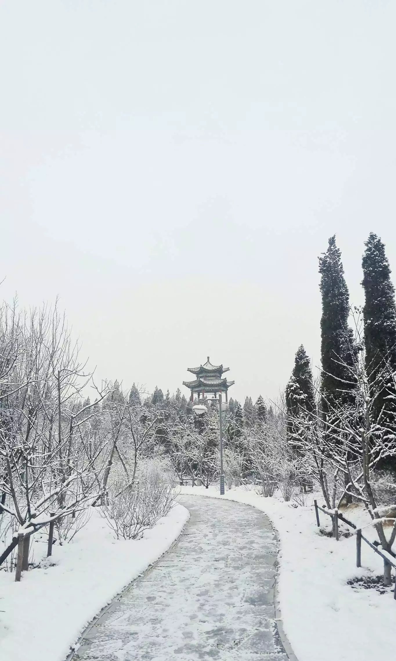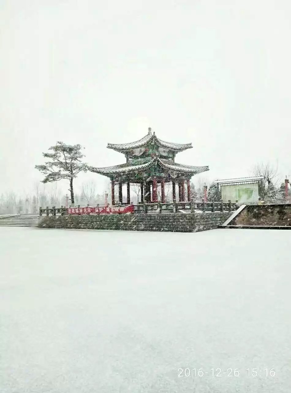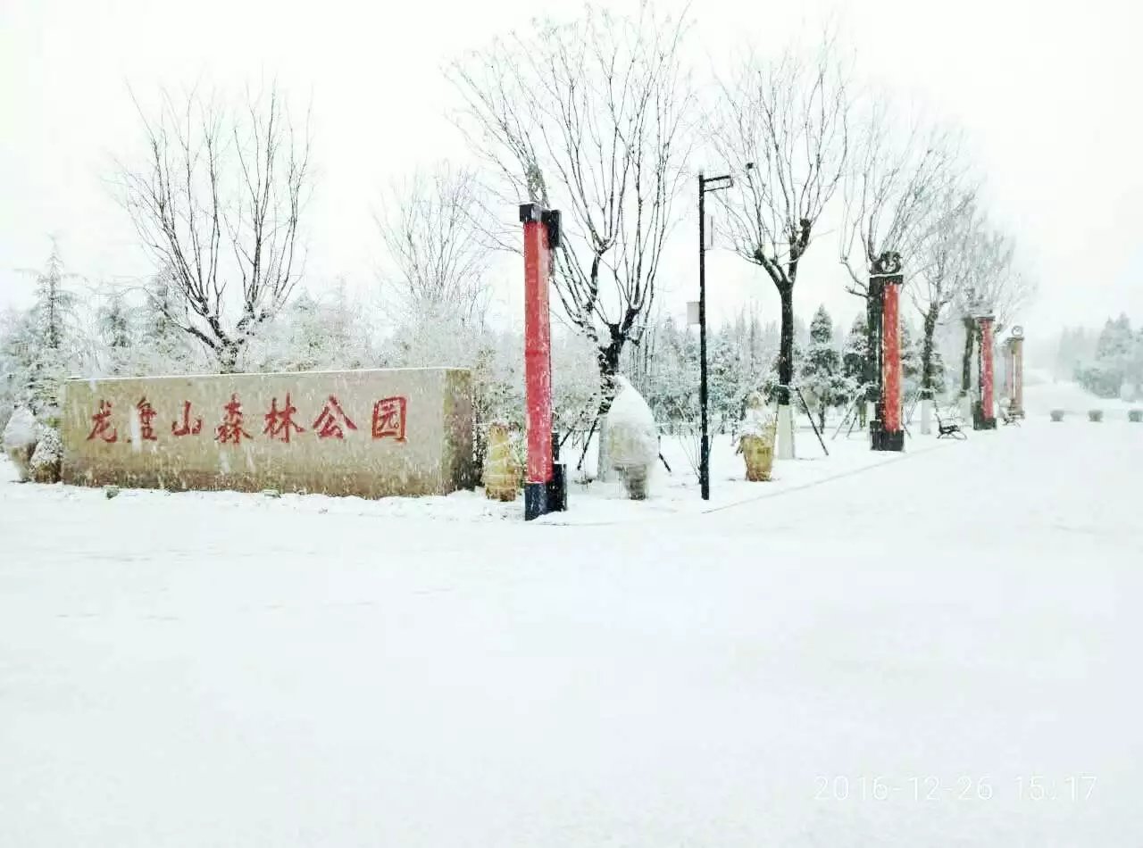 被大雪籠罩的龍盤山公園顯得格外的寂靜,皚皚白雪,一片秀美景象。白色的一片裝點(diǎn)了所有的建筑,地上房上樹上山上,無處不有雪的蹤影。我們用鏡頭記錄下了這美麗景色。