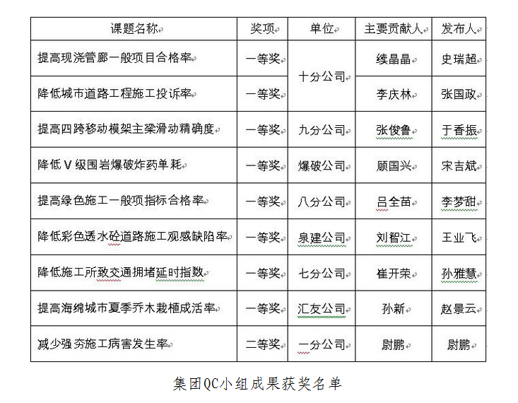 中國市政工程協(xié)會授予集團“全國市政工程建設QC小組活動優(yōu)秀企業(yè)”,九分公司張俊魯被評為“全國市政工程建設QC小組活動優(yōu)秀推進者”。
