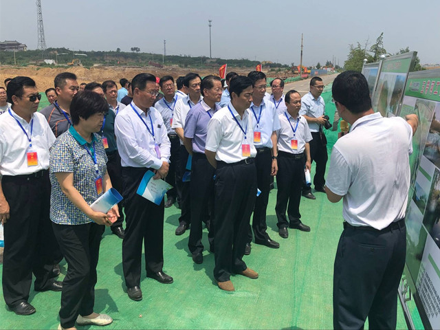 7月6日,濟(jì)南市章丘區(qū)人大常委會(huì)黨組書(shū)記、主任王繼民,黨組副書(shū)記、副主任程秋霞,黨組成員、副主任李興貴一行察看集團(tuán)承建的玉帶河及綢帶公園工程總承包(EPC)工程建設(shè)情況。